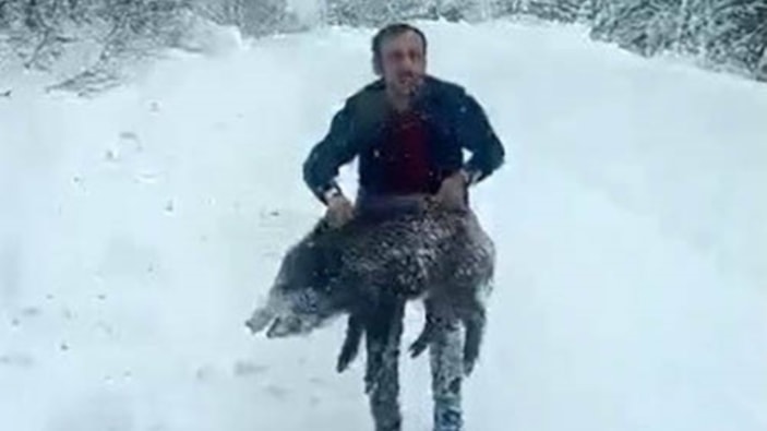 Yakalama anında kar kalınlığının 1 metreyi aştığını belirten Yılmaz, "Kucağıma aldığımda karın içine battık. Domuzu önüme koyarak kardan çıkabildim.Benim için kötü bir an değildi, aksine güzel bir anıydı.