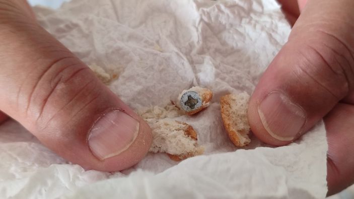 Öğlen yemeği için aldığı ekmeğin içinden vida çıktığını iddia eden Halit Bostan, neredeyse dişinin kırılacağını belirterek, "Bu sabah bakkala gidip durumu görüştüm. Onlar da 'nasıl olur' diye şaşırıp kaldılar." dedi.