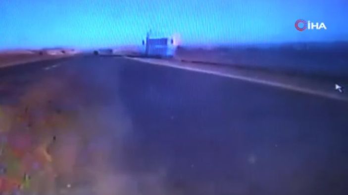 Bir kurye aracına ait kameraya yansıyan görüntülerde yoldan çıkan tır, kurye aracını teğet geçtikten sonra Orhan Bayram yönetimindeki hafif ticari araçla kafa kafaya çarpışarak şarampole devriliyor.