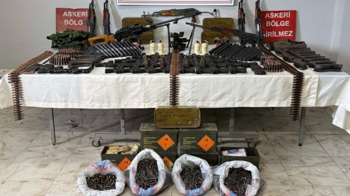 Şüphelilerin ikametlerinde ve dijital materyallerinde yapılan aramalarda; 4 el bombası ve 4 gaz el bombası, uzun namlulu makineli tüfek, 2 makineli tüfek mekanizması, 6 keskin nişancı tüfeği şarjörü ve 40 fişek, 3 tabanca ve 4 tabanca şarjörü, 54 ses ve gaz fişeği atabilen tabanca, 39 adet 30 fişek kapasiteli Kalaşnikof şarjörü, çeşitli kapasitede çok sayıda tüfek şarjörü, 3 hücum yeleği, gece görüş dürbünü ve el dürbünü, 41 sikke ve tarihi eser niteliğinde objeler, çeşitli çaplarda 15 bin 467 fişek ele geçirildi.