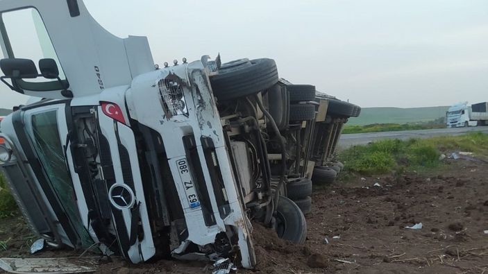 Şırnak'ın Silopi ilçesinde Habur Sınır Kapısı'na gitmekte olan 63 YZ 380 plakalı tır, sürücüsünün direksiyon hakimiyetini kaybetmesi sonucu şarampole devrildi.