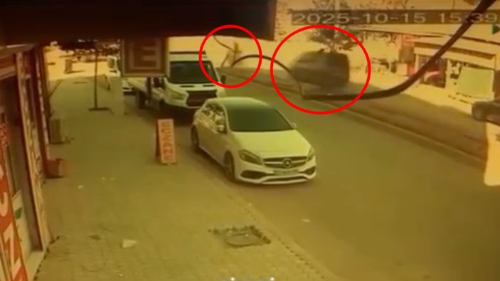 Görüntülerde, hafif ticari aracın karşı yönde gelen motosikletle çarpıştığı, motosiklet sürücüsünün savrularak yere düştüğü, çevredekilerin de yardıma koştuğu görüldü.