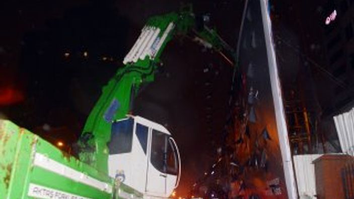 Daha sonra inşaat önünde bulunan reklam panosunun devrilmemesi için iki adet vinçle sabitlendiği görüldü.