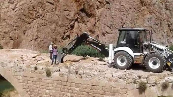 Sivas'ta 800 yıllık tarihi köprüye kepçeli müdahale