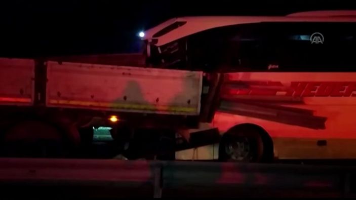 Sivas'ta yolcu otobüsü ile 2 tır çarpıştı VİDEO