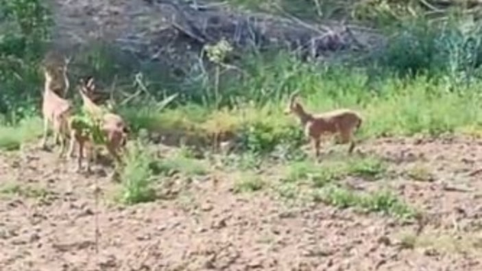 Cep telefonu ile 4 yaban keçisini kaydeden çiftçi, "Kızlar sizi burada vururlar, taşın üstüne çıkın" diye seslendi.