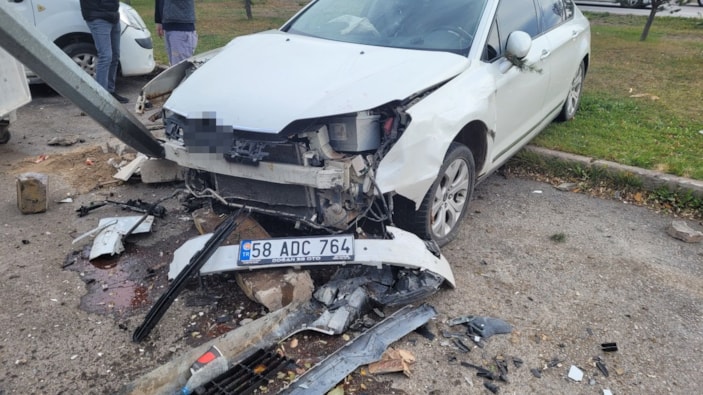 Sivas’ta sürücüsünün fren yerine gaza bastığı otomobil yoldan çıkıp park halindeki araçlara ve aydınlatma direğine çarparak durabildi.