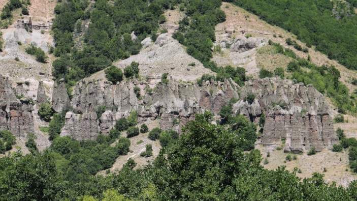 Rüzgâr erozyonu ile oluşan ve Kapadokya'da bulunan peribacalarını andıran kayalar, boy boy ve sıralı halde bulunuyor.