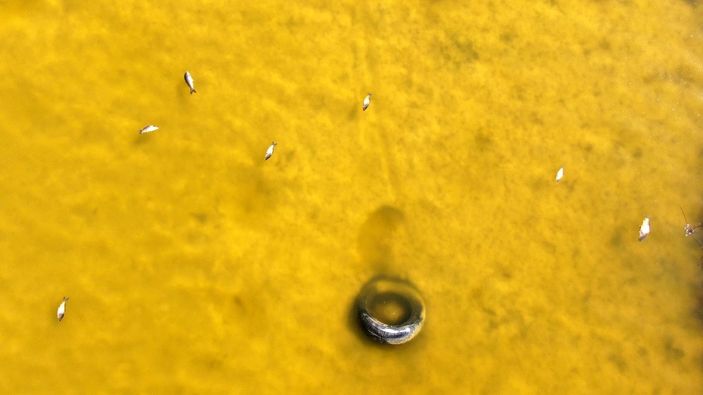 Sivas'ta turkuaz göl sarıya dönerken, balık ölümleri görüldü