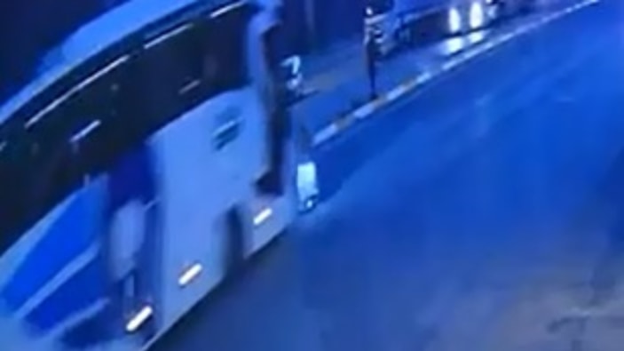 Görüntülerde, Muhlise Aloğlu'nun karşıya geçmek üzereyken bir anda duraksadığı ve yolcu otobüsünün çarptığı anlar ve vatandaşların yaşadığı panik yer aldı.