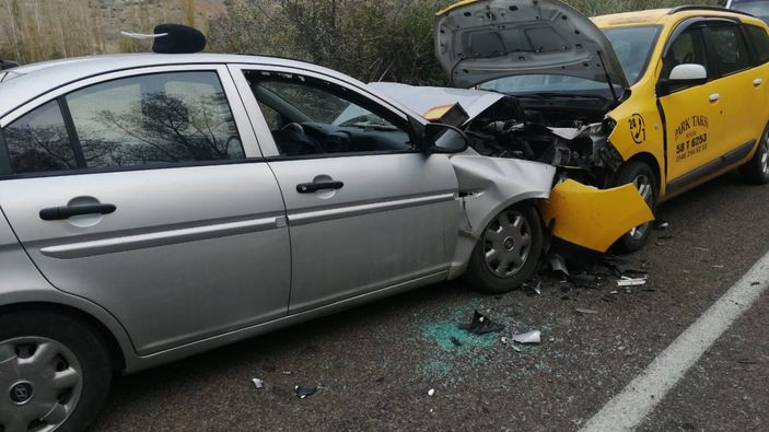 Sivas'ın Suşehri ilçesinde Hacı Demir yönetimindeki taksi, karşı yönden gelen Recep Dutkun yönetimindeki otomobille çarpıştı.