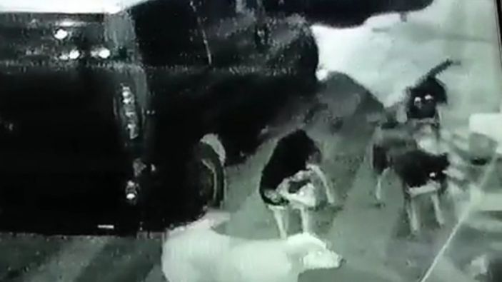 Görüntülerde vahşet anları cep telefonu ile kaydeden bir vatandaşın, "Kaçıncı kedi parçalayışları? Kediyi aldılar, gidiyorlar. Kedi ağzında, yazık. Bu köpekleri alsınlar" dediği duyuluyor.