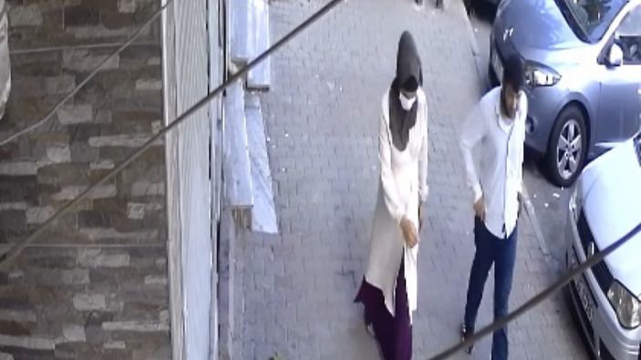 Görüntülerde, kaldırımda yürüyen çiftin iş yerlerine baktığı, kadının önce zemin katta bulunan bir iş yerine doğru yöneldiği, kapısının kapalı olması üzerine geri gelerek, 10 metre ileride bulunan kapısı açık olan pimapenciye girdiği, yanındaki kişinin de dışarıda beklediği görülüyor.