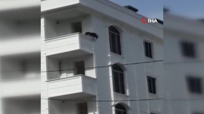 Binaya giren köpek, çıkış yolunu bulmayınca bir dairenin balkonundan atladı. Köpek, yere düştükten bir süre sonra koşarak uzaklaştı.