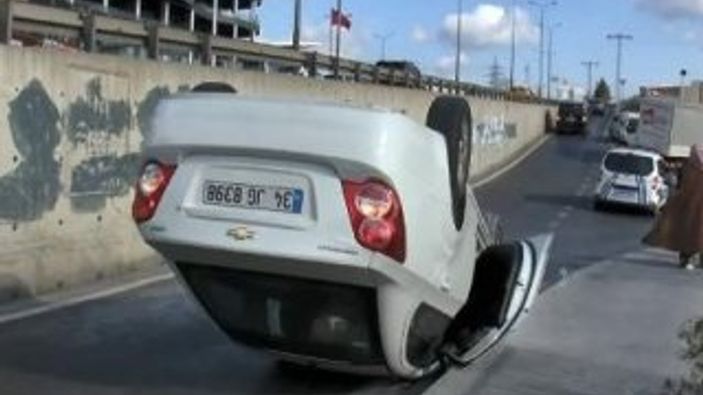 İstanbul'da D-100 karayolu üzerindeki kazada, araçlardan biri takla attı.