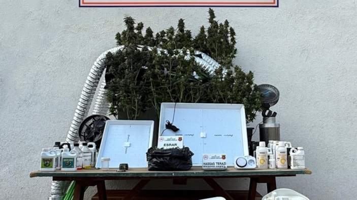 Jandarma ekiplerince düzenlenen operasyonlarda evin içerisinde giyinme kabini görünümlü uyuşturucu serası da ele geçirildi.