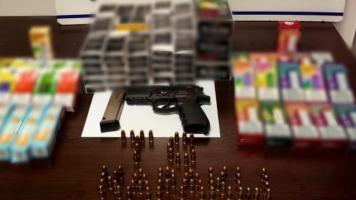 Bahse konu adreslerde arama gerçekleştiren ekipler 1 adet ruhsatsız tabanca, 62 adet fişek, 33 adet kaçak elektronik sigara, 3 kutu 200’li basılmış tütün ve 100 paket basılmış tütün ele geçirildi.