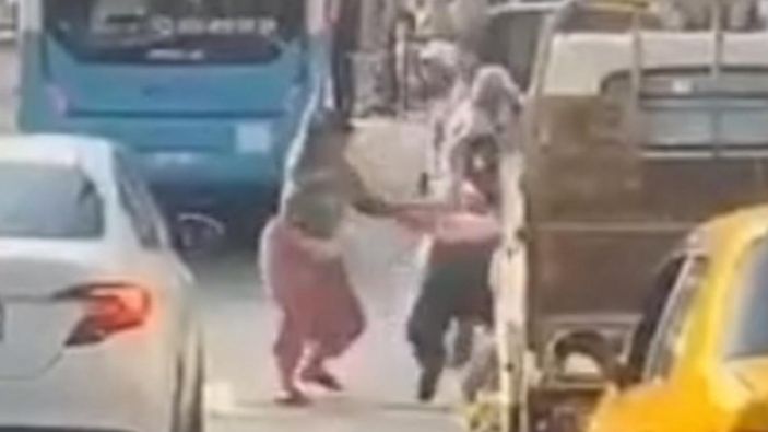 Bir grup kadın, sokak ortasında sopa ve terliklerle kavga etti. Kavga anları ise cep telefonu kamerasıyla kaydedildi.