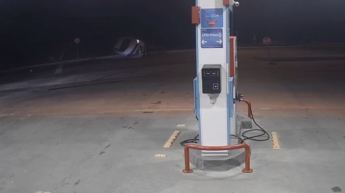 Kaza anları ve sonrası ise bir akaryakıt istasyonunun güvenlik kamerasına saniye saniye yansıdı.