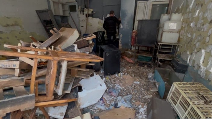 Siz de gördünüz içeriden çok ağır bir koku yayılıyor. Yani yaklaşık 100 fare içeride yuvalanıp barınmış. Dükkan kapısı uzun süredir açılmadığı için burasını fareler basmış. Lağım farelerinin hepsi kedi gibi çok büyükler.