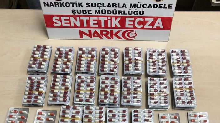 Araç sürücüsü H.A. ve E.K. isimli şahıslar üzerinde yapılan aramada, 1 adet 9 mm silah, 1 adet şarjör, 22 adet fişek ve bin 63 adet sentetik ecza hap ele geçirildi.