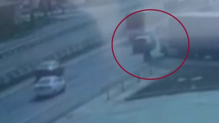 Tekirdağ'da tırla çarpışan motosikletin sürücüsünün ağır yaralandığı kaza anı kameraya yansıdı.