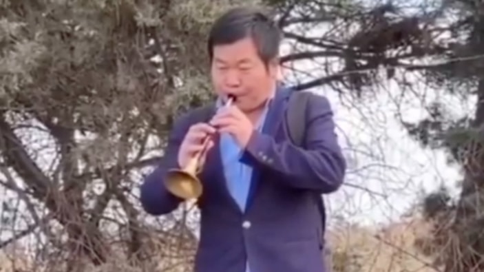 Videoda vatandaşlara cevap vermek yerine zurna çalmaya başlayan Çinli, küçük solosunun arabadakileri eliyle selam verdi.