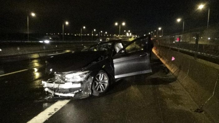 TEM Otoyolu Kınalı mevkii İstanbul istikametinde Sezgin Y.’nin kullandığı lüks araç, aşırı hız ve yağış sebebiyle sürücüsünün direksiyon hakimiyetini kaybederek bariyerlere çarptı.