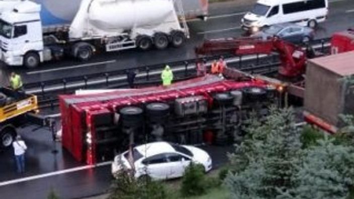 Tırın devrildiği TEM'de ulaşım kesintisi yaşandı