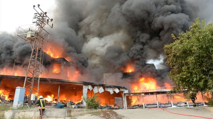 Yangın kontrol altına alınmaya çalışılıyor. Büyük maddi hasarın yaşandığı yangında can kaybı veya yaralı olup olmadığı bilinmiyor.