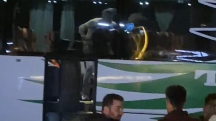 Otobüsün ön kapısını açan şoförün ikazıyla yolcular otobüsü terk etti.