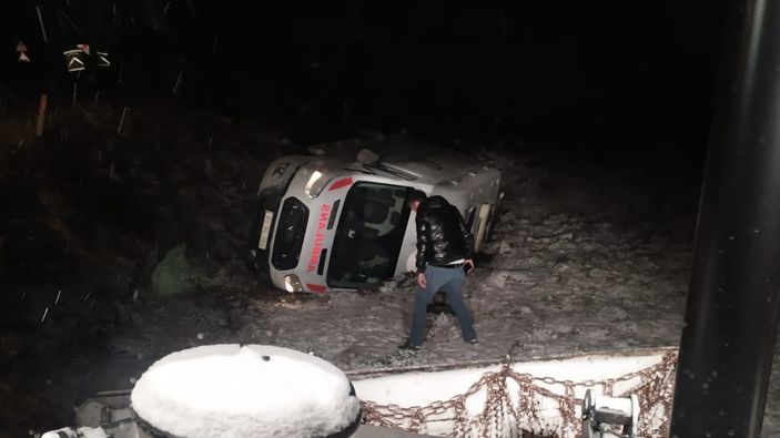 Tokat'ta 41 yaşındaki O.B. idaresindeki ambulans, taburcu olan hastayı Artova ilçesine bıraktıktan sonra Yeşilyurt ilçesine dönüş yolunda Dodurga köyü mevkiine geldiğinde kontrolden çıkarak devrildi.