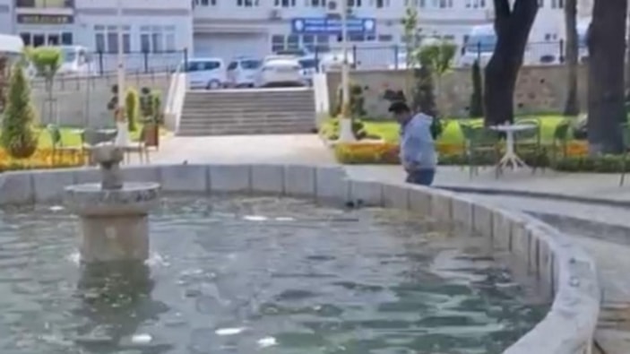 Süs havuzuna düşen yavru kargayı kurtarmaya çalışan bir vatandaş, çevredeki kargaların saldırısına uğradı.