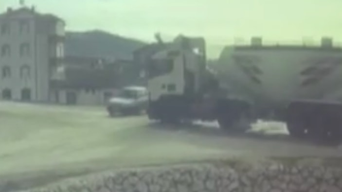 Tokat'ta otomobil ile beton mikserinin çarpışması sonucu 1'i ağır 4 kişinin yaralandığı kaza anı güvenlik kamerasınca kaydedildi.