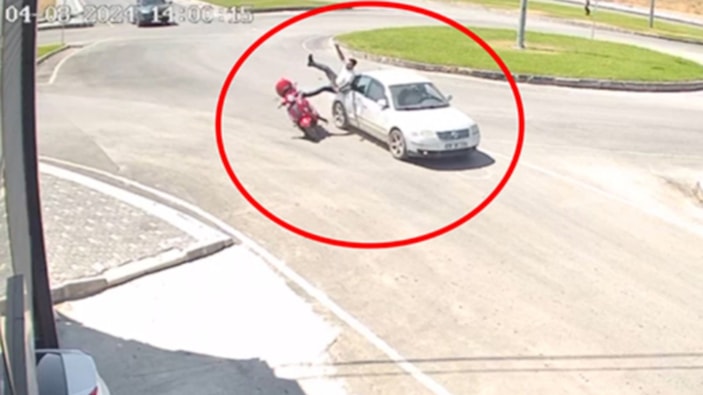Tokat'ta kavşakta otomobille çarpışan motosikletin sürücüsünün yaralandığı kaza güvenlik kamerasına yansıdı.