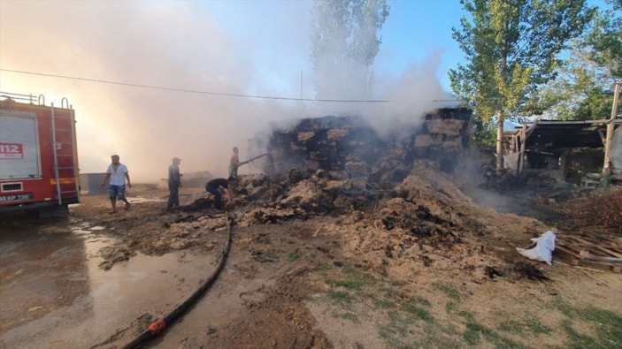 Yangın sonucu hayvan yemi olarak hazırlanan mısır sapları ve 2 bin saman balyası kullanılamaz hale geldi.