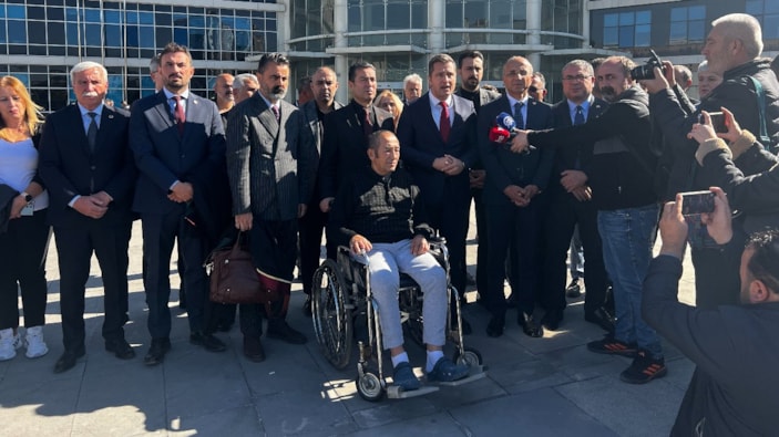 CHP üyesi Şerafettin Bahadır, duruşmaya tekerlekli sandalye ile getirildi.