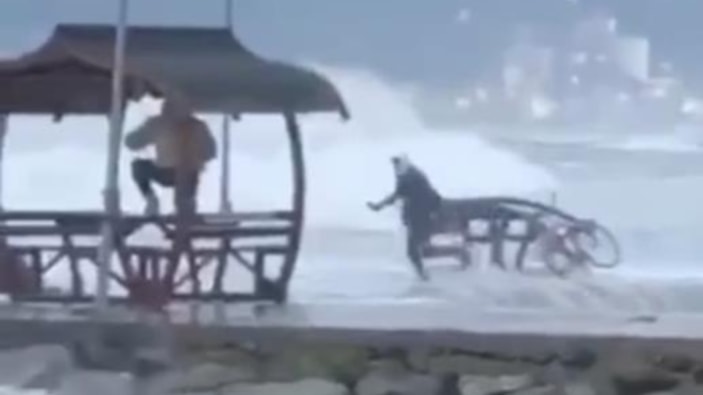 17 yaşındaki genç çocuk, sosyal medya hesabında paylaşmak için fırtınanın etkili olduğu sahile gitti. Burada yükselen dev dalgaların arasında kalan gencin zor anları kameraya yansıdı.
