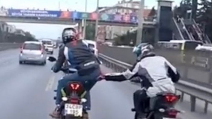 E-5 karayolu Büyükçekmece mevkisinde seyir halinde olan 3 motosikletli maganda, hem dans ederek hem de birbirlerine tekme ve yumruk atarak trafiği tehlikeye düşürdü.