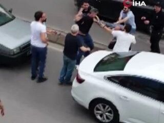 Sürücü iki şahıs, birbirlerine tekme ve yumruklarla saldırdı.