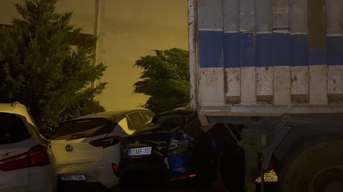 Oto sanayi sitesi mevkiinde park halinde bulunan kamyon, freninin patlamasıyla hareket ederek park halindeki diğer otomobillere çarptı.