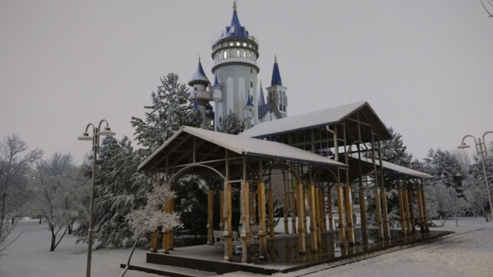 Kar yağışıyla birlikte Büyükşehir Belediyesi Sazova Bilim, Sanat ve Kültür Parkı da beyaz örtüyle kaplandı.