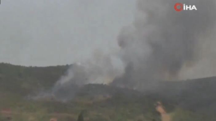 Çalılık ve ormanlık alanda 4 hektarlık alana yayılan yangına itfaiye ekiplerinin müdahalesi devam ediyor.