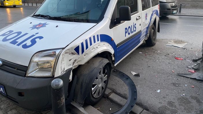 Ümraniye'de minibüs, 3 polis aracına çarparak durabildi