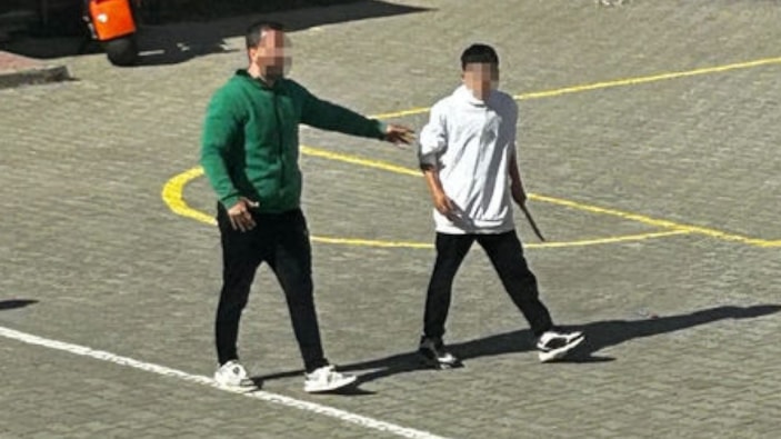 Bir süre sonra elinde bıçakla okul bahçesine dönen K.Ş., tehditler savurarak müdür yardımcısını aradığı sırada diğer öğretmenleri araya girerek engelledi.