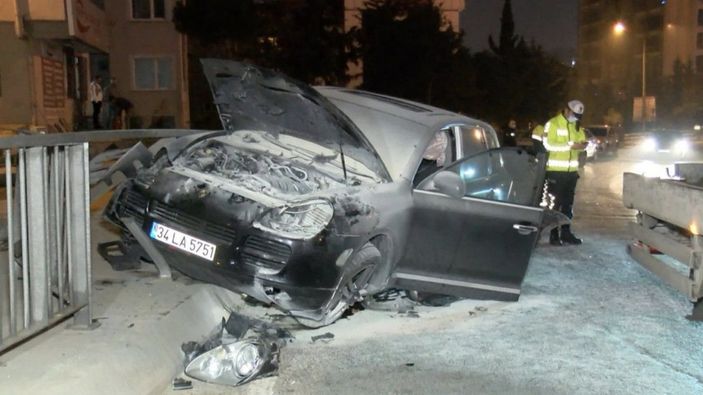 İstanbul Üsküdar'da aşırı süratli olduğu cip, alkollü sürücünün direksiyon hakimiyetini kaybetmesiyle demir korkuluklara çarptıktan sonra yanmaya başladı. İçindeki 2 kişi yaralanmadan kurtuldu.