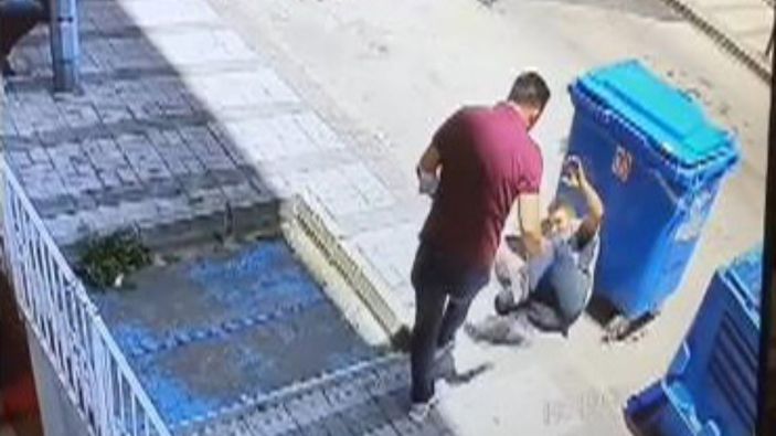 Yere düşen şahıs, kaldırımdaki taşı alarak karşılık vermeye çalıştı.