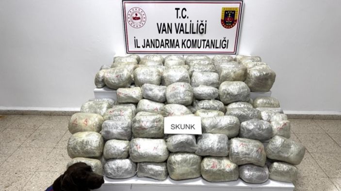 Başkale ilçesinde jandarmanın hudut bölgesinde düzenlediği operasyonda, araziye gizlenmiş 70 kilo skunk bulundu.