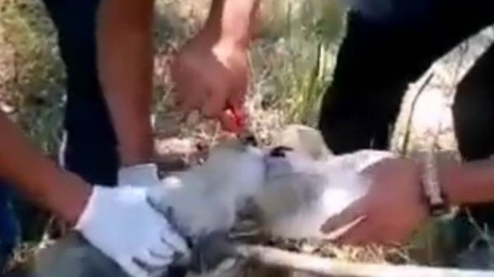 Başı bidona sıkışan köpeğin imdadına itfaiye ekipleri yetişti VİDEO