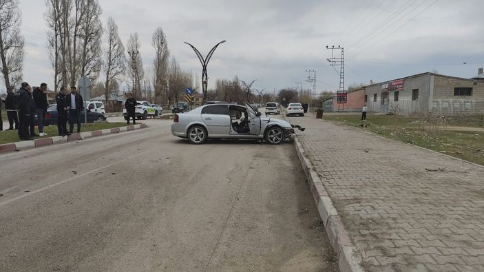 Van'da otomobil ilçe girişindeki kemerin ayağına çarptı